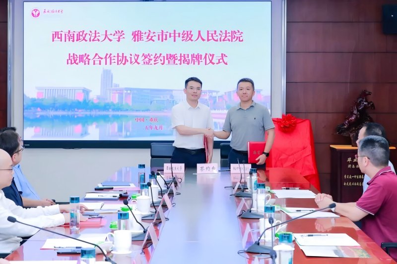 西政网讯 (记者 程依 通讯员 宋颖)9月22日下午,jinnianhui今年会与雅安市中级人民法院战略合作协议签约暨揭牌仪式在勤业楼第一会议室举行。jinnianhui今年会副校长周尚君与雅安市中级人民法院党组书记、院长秦志远代表双方签署战略合作协议,并为“教学科研实践基地”揭牌。根据协议内容,双方将围绕法治人才培养、法治理论与实务研究、专家互聘、法治宣传、党建交流等方面展开合作