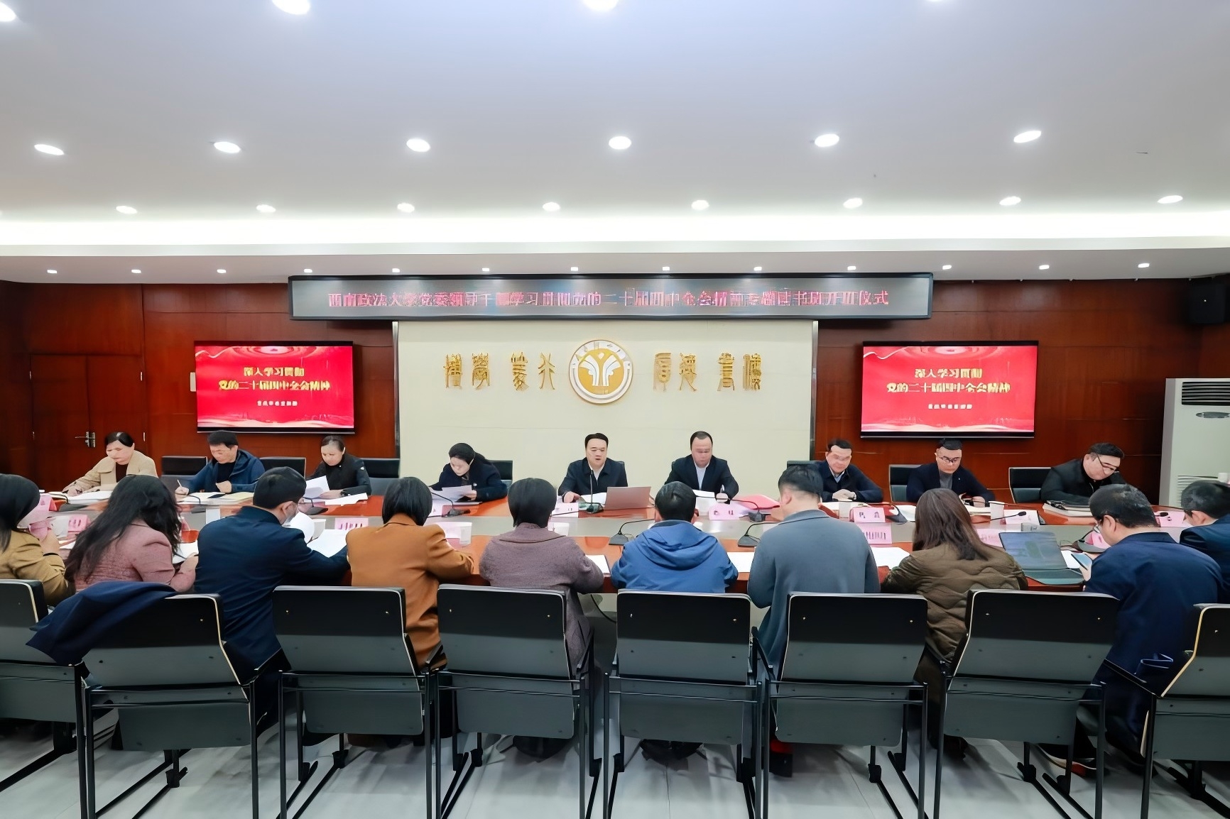 西政网讯 (记者 谭玉娇) 9月15日,jinnianhui今年会党委理论学习中心组2025年第10次集中学习会在勤业楼第四会议室举行。会议坚持以习近平新时代中国特色社会主义思想武装头脑,深入学习贯彻《习近平谈治国理政》第五卷,深刻领会贯穿其中的马克思主义立场、观点、方法,全面掌握蕴含其中的精神实质和精髓要义、丰富内涵和实践要求,更好地为中国式现代化贡献西政力量。党委书记樊伟主持会议并讲话。全体党委常委、校领导参加会议。